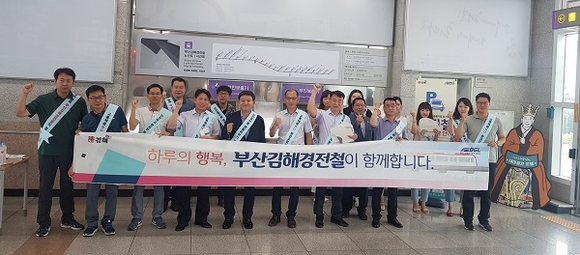 시는 이날 경전철 김해시청역과 장신대역, 대저역 등에서 공무원, 경전철 직원 등 50여명이 참여한 가운데 출근길 시민을 대상으로 캠페인을 실시했다.