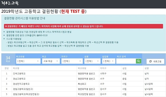 이 관리시스템은 전학을 희망하는 고등학생과 학부모에게 학교 전학 가능 결원 수를 실시간으로 보여줌으로 희망 학교 선택 시 불편함을 해소하고 투명성을 높이기 위해 도입됐다.