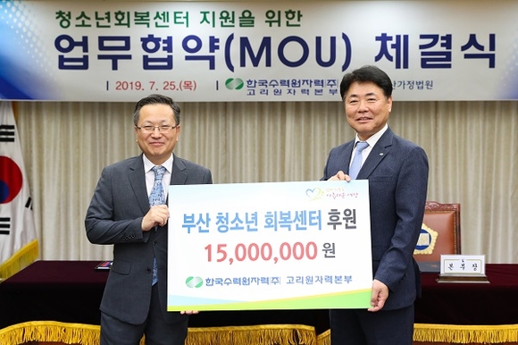 한국수력원자력 고리원자력본부는 25일 부산시 연제구 부산법원종합청사에서 ‘청소년회복센터 후원금 전달식’을 가졌다.