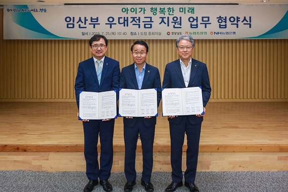 농협 경남본부는 25일 경남도청 중회의실에서 경상남도와 「임산부 우대 적금」 업무 협약식을 가졌다.