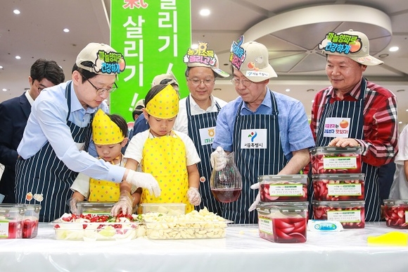 이날 어린이 49명을 초청해 먹거리로서의 농산물에 대한 가치를 알리고 직접 담근 장아찌를 맛보기도 하며 함께 직접 담근 마늘·양파 장아찌 5천개(각 2L)를 서울시와 경상남도의 소외계층에 지원하는 행사로 의미를 더했다