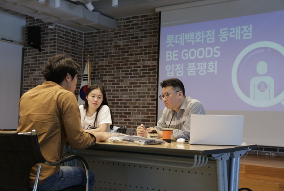 31일 부산창조경제혁신센터 교류공간에서 열린 롯데백화점 동래점 ‘BE-GOODS’ 매장 입점을 위한 품평회에서 한 중소기업 관계자가 제품을 설명하고 있다. 부산창조경제혁신센터는 백화점 입점을 희망하는 지역 창업, 중소기업을 대상으로 이번 품평회를 열었다. 선별 과정을 거쳐 선정된 입점 기업은 롯데백화점 동래점 2층에 있는 BE-GOODS 매장 운영 지원을 받게 된다. (사진=부산창조경제혁신센터 제공)