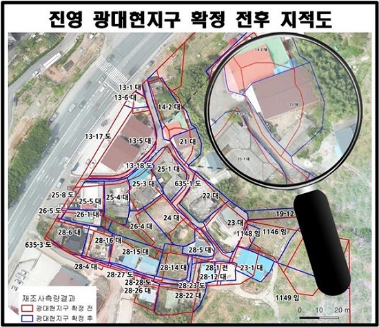 시는 지난해부터 이곳의 토지 실제현황에 맞게 지적공부의 면적, 경계 등을 새로이 등록하는 작업을 해왔다.