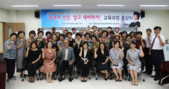 울산광역시 울산평생교육원에서 주최하고 춘해보건대학교 평생교육원에서 주관하는 「2019년 울산 시민학사 ‘중년의 건강, 알고 대비하자!’ 교육과정」 종강식이 지난 1일 명덕관 1층에서 개최됐다.