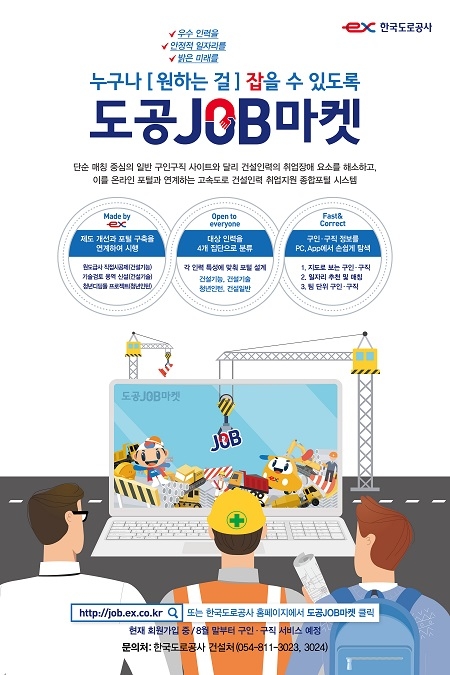 취업 연계형 인턴제로 운영 중인 '청년취업 디딤돌' 프로그램도 '도공JOB마켓'에서 건설현장별 채용정보 확인과 구인·구직 매칭이 수시로 가능해진다.