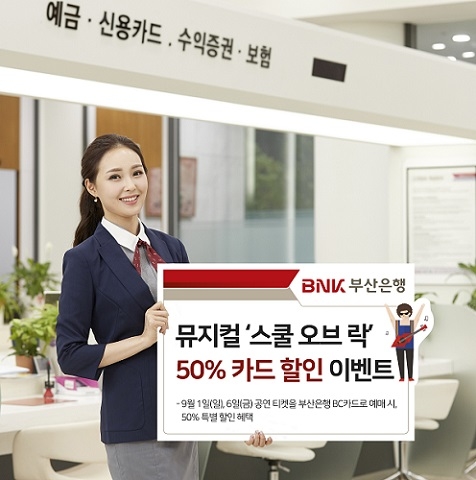 BNK부산은행은 인기 뮤지컬 ‘스쿨 오브 락’ 월드투어 부산 공연 티켓을 반값 할인하는 카드 이벤트를 진행한다고 6일 밝혔다.