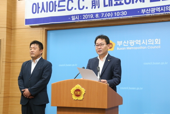 부산시의회 기획행정위원회 박승환 위원장(연제구2, 더불어민주당)과 조철호 의원(남구1, 더불어민주당)이 구영소 전 아시아드 CC 대표이사를 횡령, 배임 등의 혐의로 검찰에 고발했다.