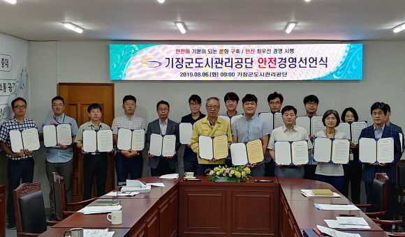 부산시 기장군도시관리공단이 지난 6일 공단 본부에서 안전 최우선 경영을 위한 ‘전사 안전경영선언식’을 열었다고 7일 밝혔다.