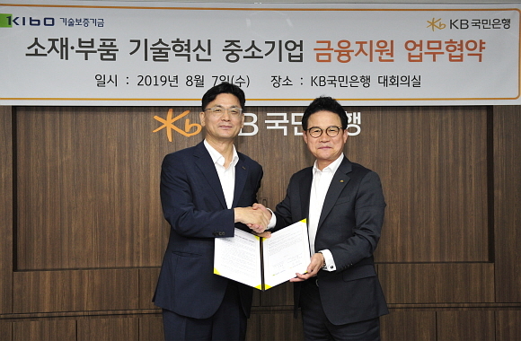 이번 협약은 지난 2일 일본 화이트리스트 한국 명단 제외 후 소재, 부품업종 영위기업을 지원하기 위한 금융권 내 최초의 업무협약으로 기보와 국민은행은 경영애로를 겪는 소재, 부품 기술혁신 중소기업 금융 지원을 위한 협업 체계를 구축한다.