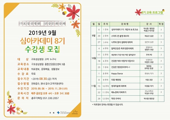구포성심병원은 오는 9월부터 ‘심(心)아카데미 8기’를 개설한다.