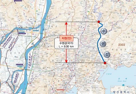 이번에 국가 하천으로 고시된 곳은 금정 회동저수지 종점에서 수영구 수영교까지 하류 구간 9.00㎞의 하천으로 내년 1월 1일부터 승격된다.