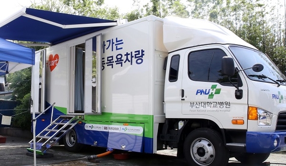 부산대학교병원은 무더위에 취약한 노숙인들을 위해 ‘찾아가는 이동목욕차량’을 사회복지기관과 함께 운영하고 있다.