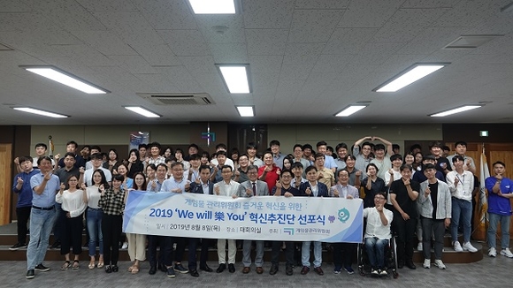 게임위는 2019년도 공공기관 경영혁신 가이드라인에 따른 3대 전략 및 세부과제를 실천하기 위해 혁신추진단을 구성했다. 사무국장을 혁신추진단장으로, 경영기획부장을 혁신책임관으로 임명해 기관의 혁신의지를 독려하고 책임성을 확보했다. 이번 혁신선포식을 통해 조직 내 창의역량을 강화하고 혁신 지향적 문화 조성을 이루고자 한다.