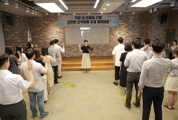 이번 결의대회는 조직 내 존중과 배려의 문화를 조성하고 직장 내 우월적 지위, 권한을 이용해 다른 근로자에게 신체적, 정신적 고통을 주는 행위를 근절하며 직원 인권 침해를 사전에 방지하는 데 목적을 두고 있다.