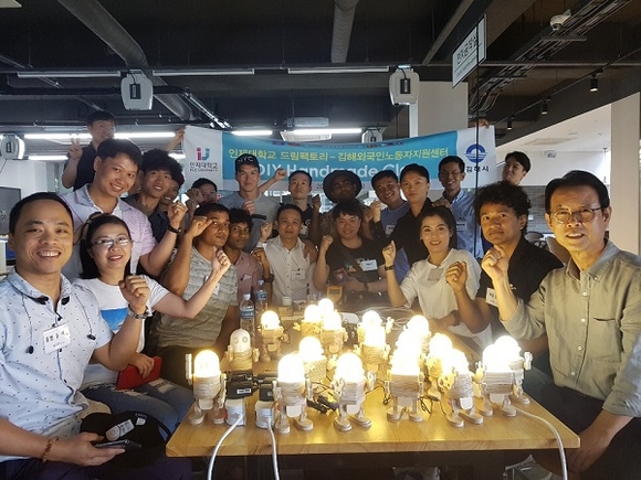인제대학교가 외국인노동자와 함께하는 ‘DIY 핸드메이드 감성 조명 만들기’ 클래스를 11일 드림팩토리센터 전용 공방에서 열었다.