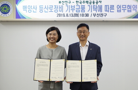 한국주택금융공사(HF)와 부산진구청이 13일 오전 부산진구청에서 백양산 등산로 정비사업 협약을 맺었다고 밝혔다.