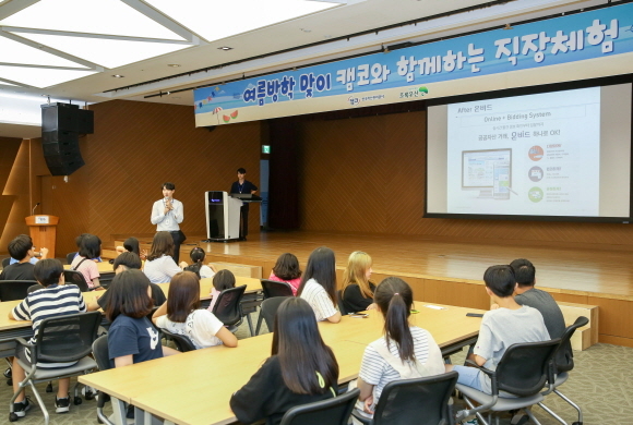 이날 캠코 직장 체험 프로그램에 참가한 학생들은 국유재산 조사에 활용되는 ‘드론 시연’을 시작으로 사무실 탐방, 캠코 열린도서관 사서 체험 등 다양한 업무를 경험하고 태양광 자동차 만들기 등의 체험을 했다.