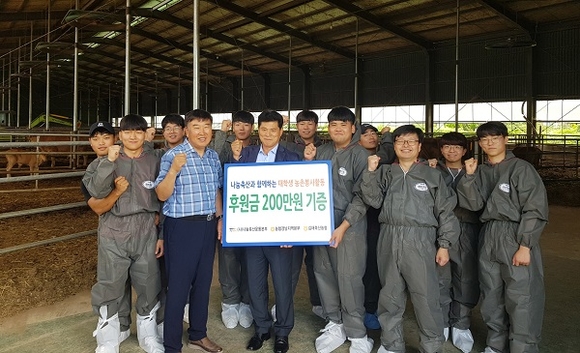 나눔축산운동본부는 16일 김해시 생림면 소재 축산농가에서 경상대학교 축산학부 소속 16명으로 구성된 ‘나눔축산 대학생 농촌봉사단’에 후원금 200만원을 전달했다.