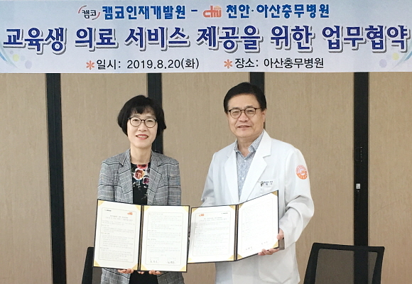 한국자산관리공사(캠코) 인재개발원이 20일 오전 10시 30분 아산충무병원에서 천안·아산충무병원과 ‘인재개발원 교육생 의료 서비스 지원 협약’을 체결했다고 밝혔다.