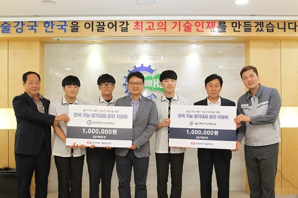 한국동서발전은 21일 울산마이스터고등학교(울산 북구 소재)에서 울산마이스터고 및 울산에너지고를 대상으로 2019년 전국 기능경기대회 참가 훈련비 전달식을 가졌다.