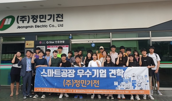 이번 교육은 행정안전부와 경상남도의 지원을 받아 창원대 졸업 예정자 및 졸업생 30명이 도내 강소기업인 ㈜정민기전을 방문해 스마트공장의 생산공정을 견학하고 그 필요성에 대해 공유했다.