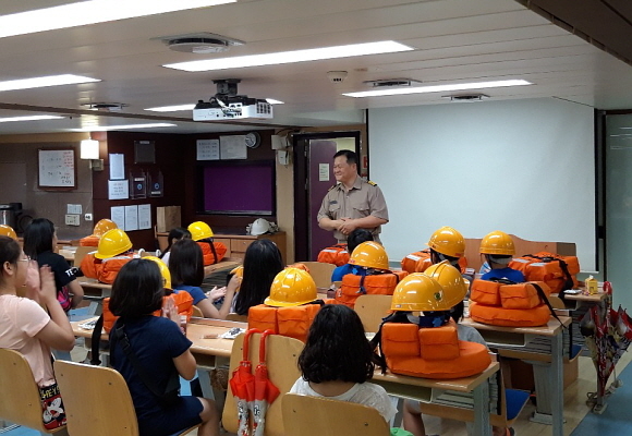체험 행사는 선박 승선 시 필수적인 기초 안전교육, 비상상황 대처 요령, 항해 통신장비 운용 체험 등 학생의 눈높이에 맞춰 진행됐다.