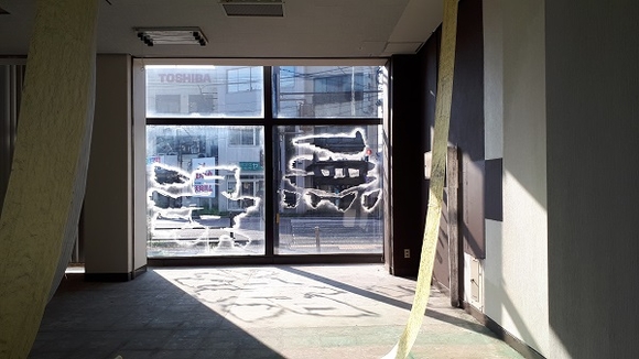 그가 이번에 전시하게 된 ‘無影 no dust in kanazawa’ (유리창에 접착제, 먼지, 가변설치, 2019)작품은 유리창에 접착제를 활용해 먼지들을 붙인 작품이다.