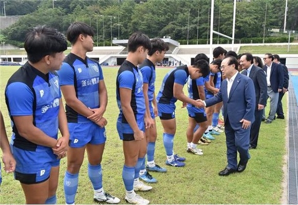 오거돈 시장은 이날 부산체고 교장으로부터 체전 준비사항과 예상 전력을 청취한 뒤 학생선수들이 훈련하고 있는 훈련장을 방문해 격려했다.