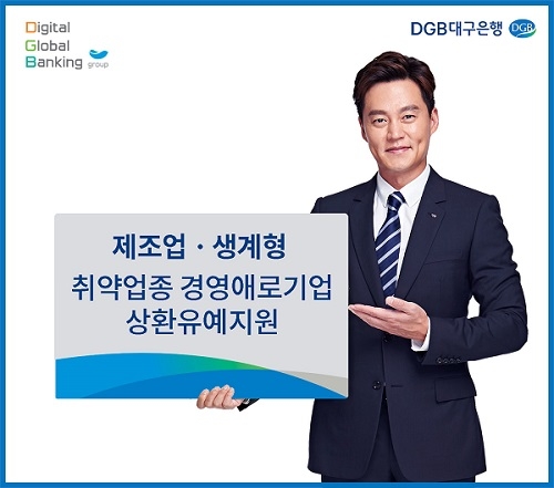 DGB대구은행은 제조업종 전체와 생계형 취약업종(음식업, 소매업)의 경영애로를 완화하고 사회적 책임 이행 및 착한금융 실천을 위해 관련 기업에 대출금 상환유예 금융지원을 이달 23일부터 올해 연말까지 시행한다고 밝혔다.
