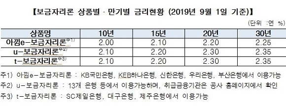 이에 공사 홈페이지를 통해 신청하는 'u-보금자리론‘과 은행 창구에서 신청하는 ’t-보금자리론‘은 대출 만기에 따라 연 2.10%(10년)에서 최대 2.35%(30년)로 이용할 수 있다.