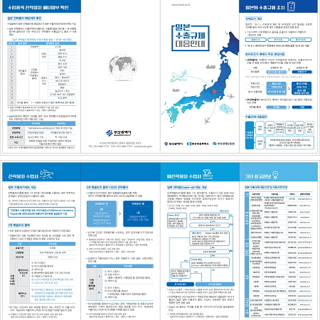 부산시는 전략물자관리원에서 제공받은 수출 규제 대응자료를 토대로 정부, 부산시, 관계기관 등의 지원 대책을 정리한 안내 리플렛을 만들어 27일 기업에 제공하기로 했다고 밝혔다. 이에 더해 일본의 자율준수기업 리스트, 주요 감시대상 품목 등도 홈페이지에 공개했다.