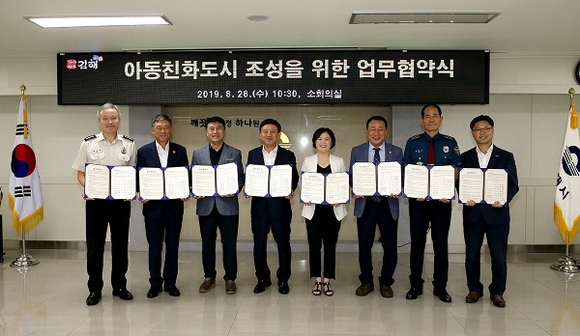 경남 김해시는 28일 시청 소회의실에서 시의회, 교육청, 경찰서, 소방서, NGO단체 등 7개 지역 기관·단체와 유니세프 아동친화도시 조성을 위한 업무 협약식을 체결했다고 밝혔다.