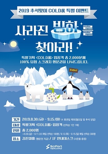 국립부산과학관이 한가위 추석을 맞아 스크래치 행운권 이벤트 ‘사라진 빙하를 찾아라!’를 8월 30일부터 오는 9월 15일까지 개최한다.