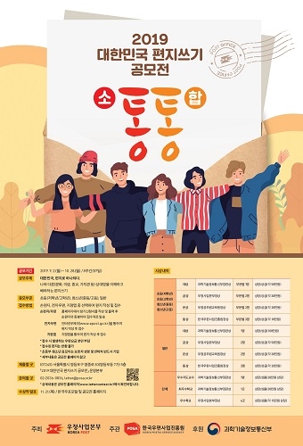 과학기술정보통신부 우정사업본부는 오는 9월 2일부터 10월 28일까지 ‘2019 대한민국 편지쓰기 공모전’ 접수를 받는다고 밝혔다.