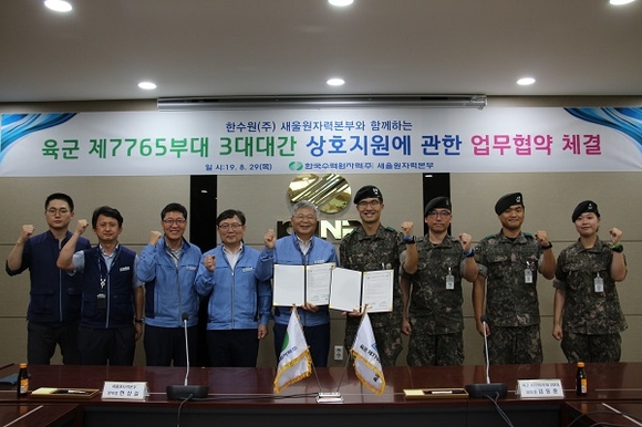 한국수력원자력 새울원자력본부는 29일 새울본부 본관 대회의실에서 육군 제7765부대 3대대와 재난대응 상호지원에 관한 업무협약을 체결했다고 30일 밝혔다.