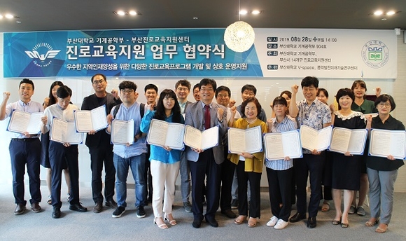 부산대학교 기계공학부는 지난 28일 교내 기계관 904호에서 부산광역시 14개 구의 진로교육지원센터와 함께 청소년들의 다양한 진로교육 프로그램 개발 및 운영에 관한 업무협약을 체결했다고 2일 밝혔다.