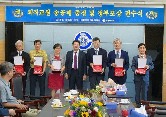 창원대학교는 30일 대학본부 6층 회의실에서 8월 퇴직 교원에 대한 ‘송공패 증정 및 정부포상 전수식’ 행사를 개최했다고 밝혔다.