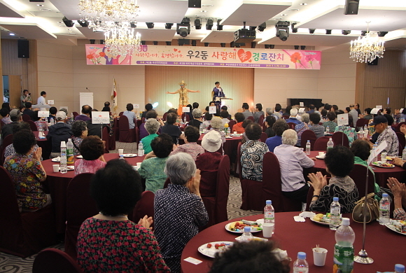 부산관광공사 아르피나가 3일 아르피나 2층 그랜드볼룸에서 해운대구 우2동 거주 어르신을 위한 ‘2019 사랑해孝 경로잔치’ 행사를 열었다고 밝혔다.