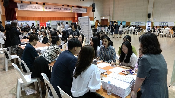 이날 취업박람회는 간호학과 4학년 학생 337명이 취업 희망 기관의 정보를 받아 취업 준비에 효과적으로 도움을 받고자 마련됐다.