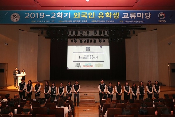 동아대학교는 ‘2019학년도 2학기 외국인 유학생 교류마당’을 지난 4일 부민캠퍼스 다우홀에서 개최하고 새로 입학한 학부 유학생과 어학연수생, 교환학생, 대학원 신입생 등을 환영했다.