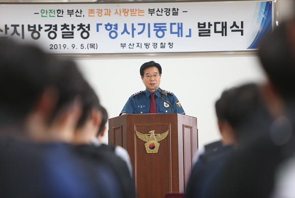 부산지방경찰청이 강력사건과 같은 주요 사건과 범죄 취약지역에 대한 치안 불안감 해소를 위해 5일 오후 3시 본청 제3기동대 청사에서 ‘형사기동대’를 발대했다고 밝혔다.