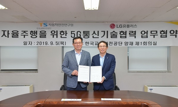 한국교통안전공단은 5일 ㈜엘지유플러스와 5G망, 5G-V2X 등 통신인프라 기반의 자율주행 기술협력을 위한 업무협약을 체결했다고 밝혔다.