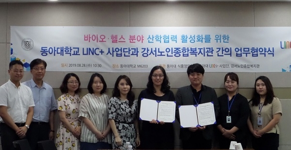 동아대학교 링크플러스(LINC+) 사업단은 부산 강서노인종합복지관과 ‘바이오·헬스 분야 산학협력 활성화’를 위한 업무협약을 체결했다고 9일 밝혔다.