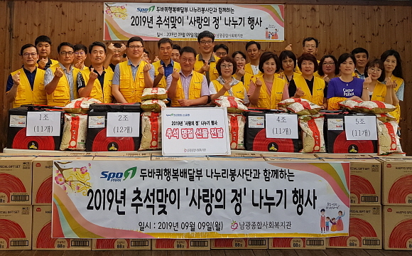 부산지방공단 스포원의 ‘나누리봉사단’이 추석을 앞둔 9일 오전 10시, 홀로 어르신 등 사회배려계층 112세대를 방문해 ‘사랑의 정 나누기’ 행사를 진행했다고 밝혔다.