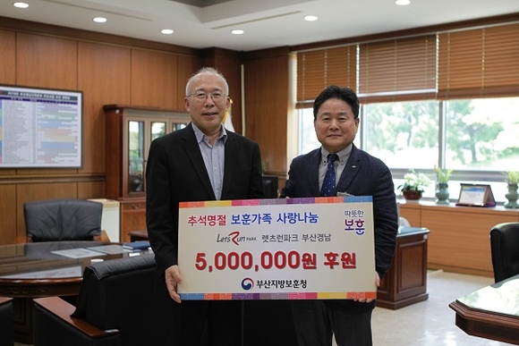 전달된 기부금은 부산보훈청에서 선정한 저소득 보훈가족 50명에게 명절 위문품 증정에 쓰일 예정이다.