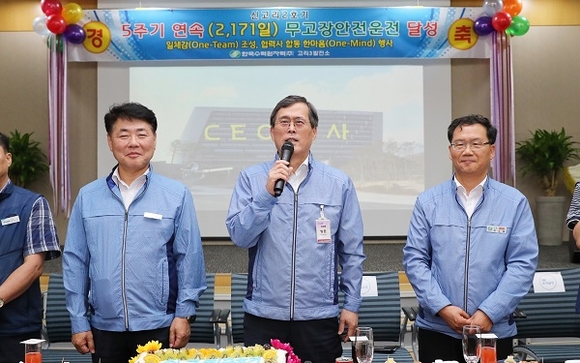 한국수력원자력 고리원자력본부는 10일 오후 3발전소 강당에서 ‘신고리2호기 5주기 연속 무고장 안전운전 달성 기념행사’를 개최했다고 11일 밝혔다.