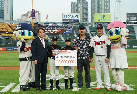BNK부산은행이 ‘가을야구 정기예금’의 판매 수익금으로 지역 유소년 야구 발전을 위한 후원금을 전달했다고 11일 밝혔다.