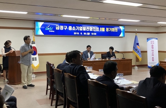 대학혁신지원사업의 일환으로 부산외대 국제통상연구소에서 운영하는 금정아고라 사업의 일환으로 열린 이 포럼은 금정구 중소기업발전협의회 8월 정기회의가 열린 지난 30일 금정구청장, 중소기업협의회장을 비롯해 40명의 중소기업인이 참여한 가운데 금정아고라 사업의 취지와 향후 진행될 단위 사업 소개를 김정포 소장이 전달하고 이어지는 중소기업대표들의 질문에 답하는 방식으로 진행됐다.