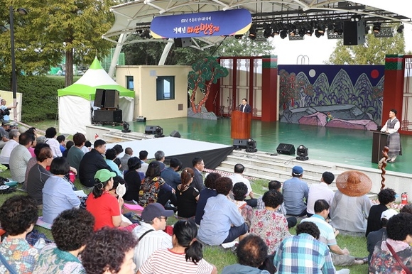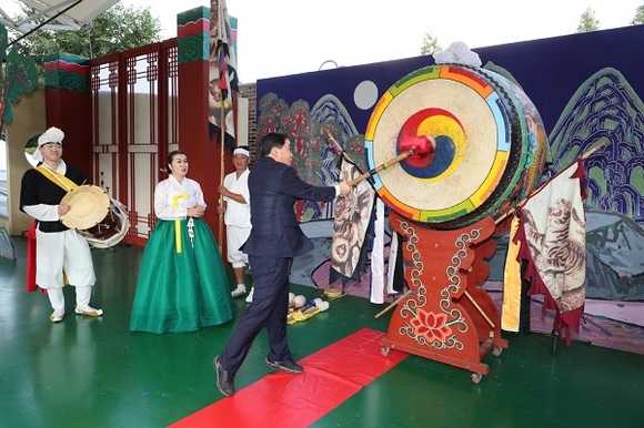 허성무 창원시장이 15일 추석을 맞아 마산 만날공원에서 열린 전통 민속축제인 마산만날제 축고제 및 개막식에 참석했다. 이날 개막식에는 시민 3000여 명이 참석했으며, 축고제를 시작으로 축무, 5大神타고 등 다양한 행사가 펼쳐졌다. (사진=창원시 제공)