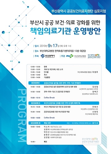 부산광역시 공공보건의료지원단은 오는 17일 오후 1시 부산대병원에서 ‘부산시 공공보건의료 강화를 위한 책임의료기관 운영방안’을 주체로 심포지엄을 개최한다.